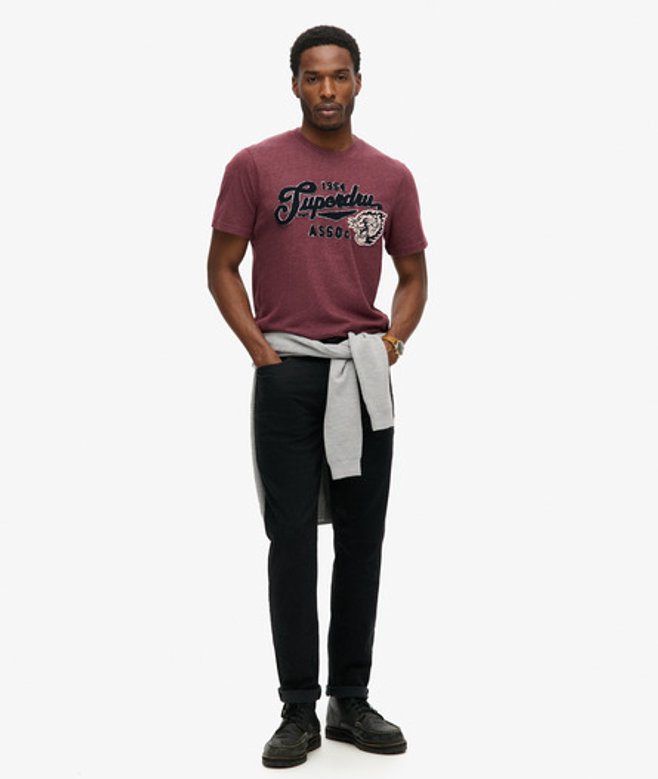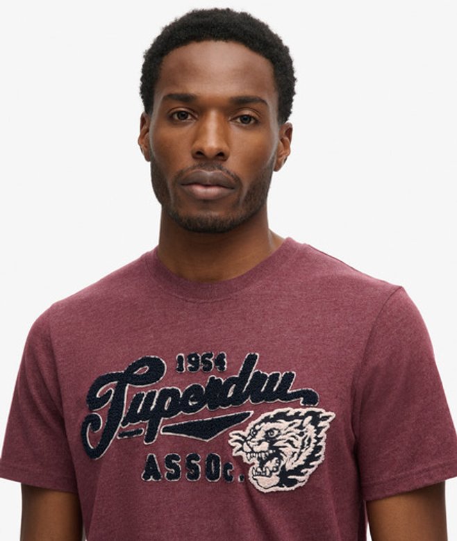 Kies je gebruikelijke maat Ronde halslijn Korte mouwen Kenmerkende Superdry-patch Voorzien van een afbeelding in collegestijl met appliqué voor een geweldige mascottelook.
