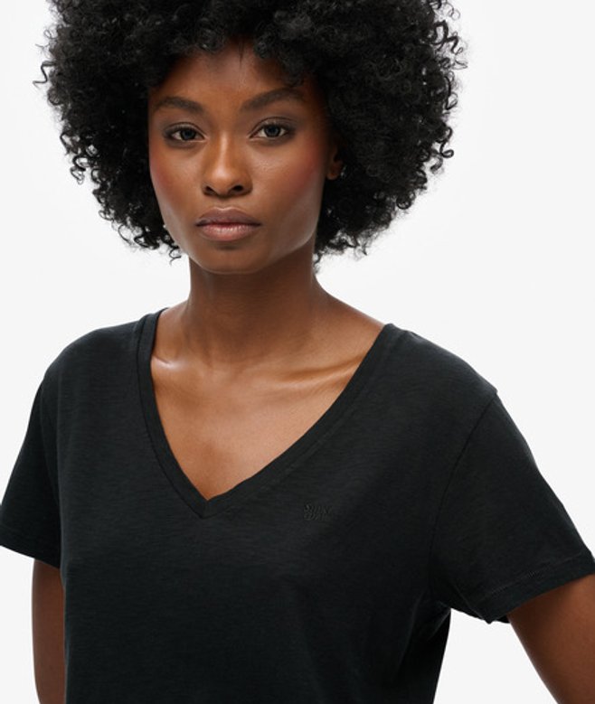Superdry Ruimvallend Geborduurd T-shirt met V-hals Zwart | ricciano NEDERLAND