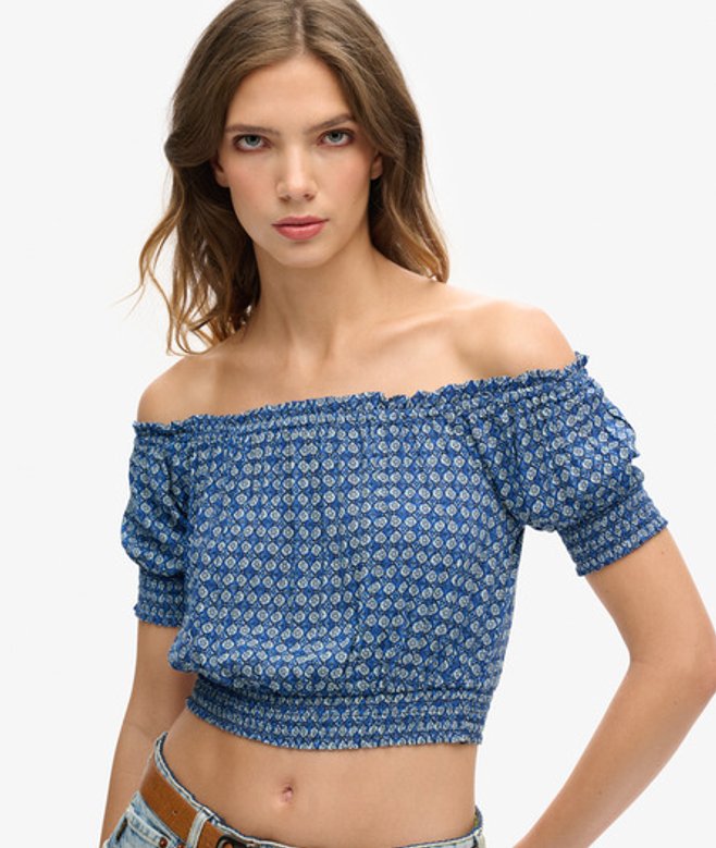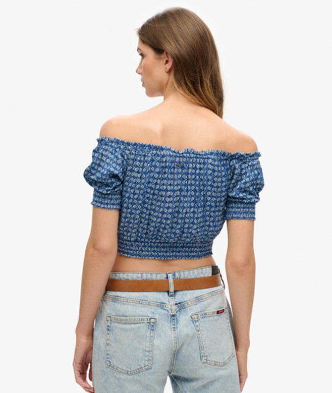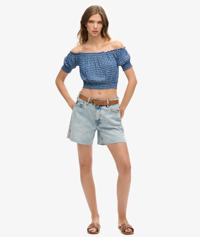 Onze korte top met korte mouwen en smokwerk is een moeiteloze manier om je look een boost te geven en je stijl een subtiele bohemien flair te geven.