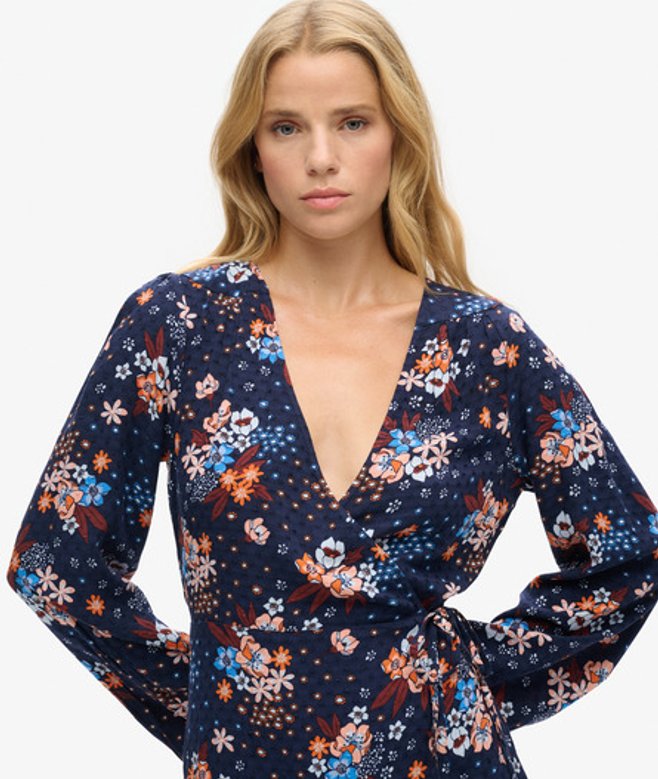 De mini-wikkeljurk heeft een leuke en flirterige look, die zowel tijdloze stijl als je eigen authentieke zelfexpressie uitstraalt.
