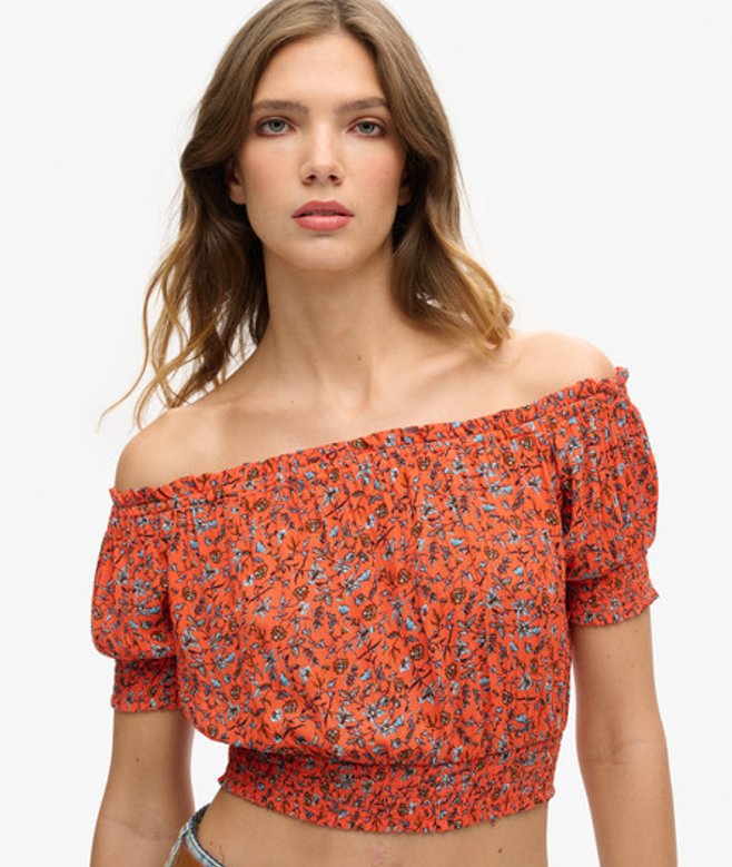 Superdry Korte top met Korte Mouwen en Smokwerk Oranje | ricciano NEDERLAND