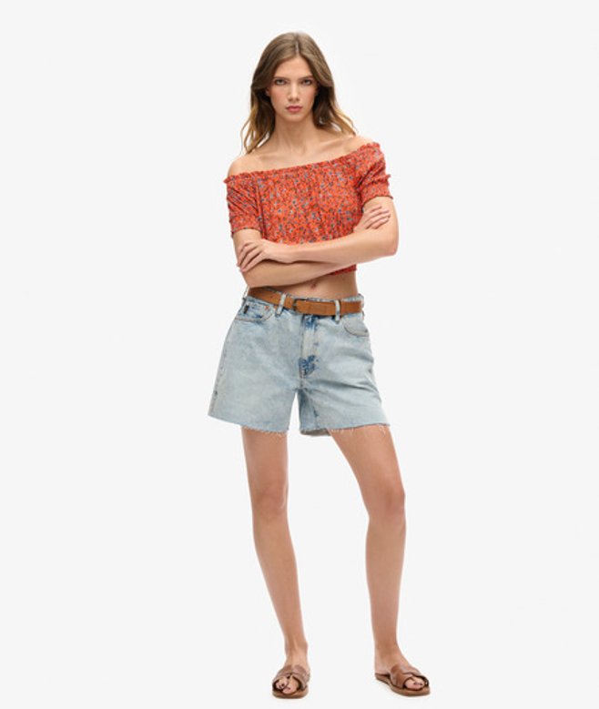 Onze korte top met korte mouwen en smokwerk is een moeiteloze manier om je look een boost te geven en je stijl een subtiele bohemien flair te geven.