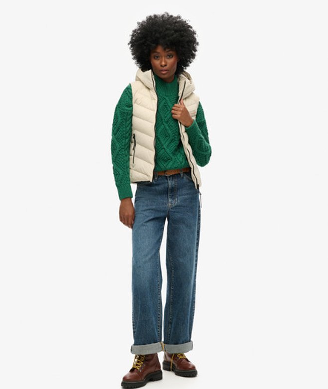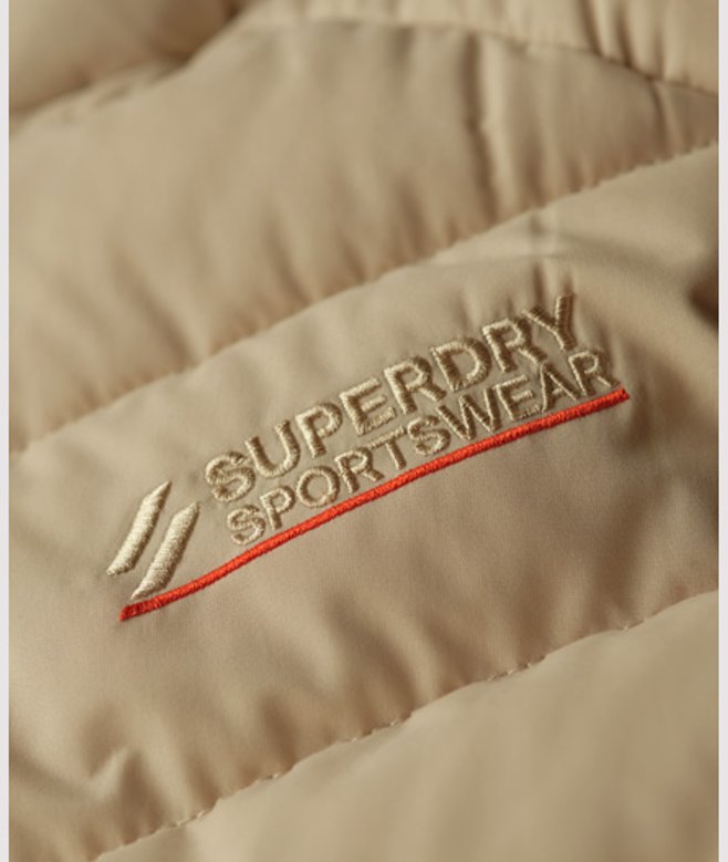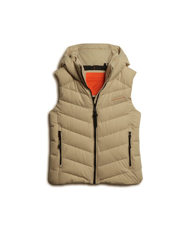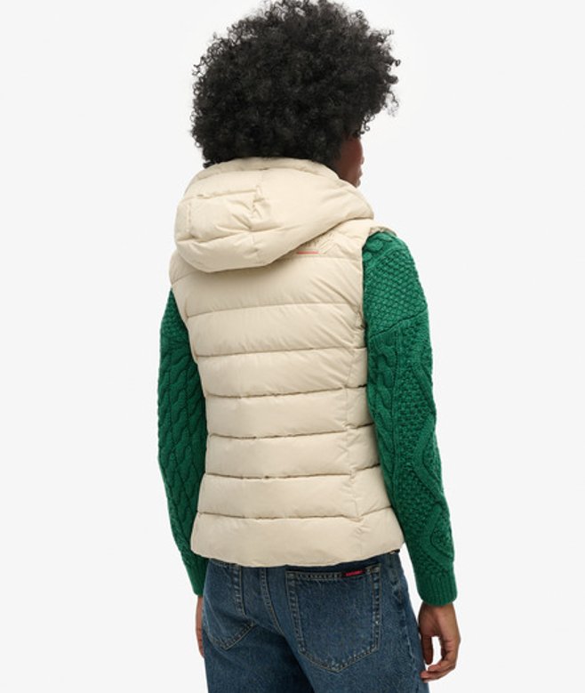 Superdry Gewatteerde Bodywarmer van Microvezel met Capuchon Beige