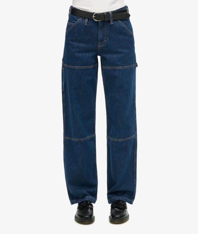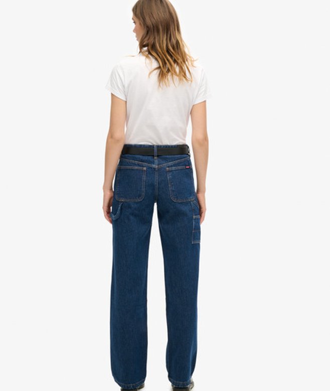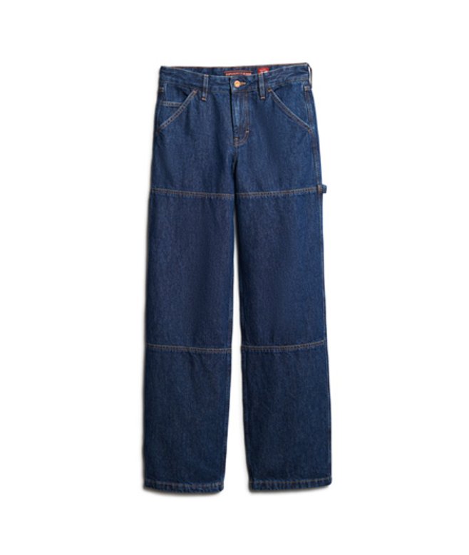 Superdry Denim Timmermansbroek van Biokatoen met Middelhoge Taille Donkerblauw