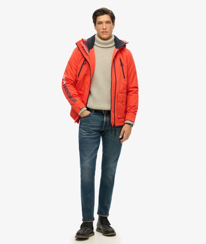 Slimfit - de nauw aansluitende pasvorm zorgt voor een getailleerd silhouet Capuchon met elastisch trekkoord Zacht kraagvoering Dubbellaagse tweewegritssluiting Met klittenband te verstellen boorden Vier buitenzakken Body en mouwen met gewatteerde voering Verstelbare zoom met elastisch trekkoord Superdry-logoprint op de mouw