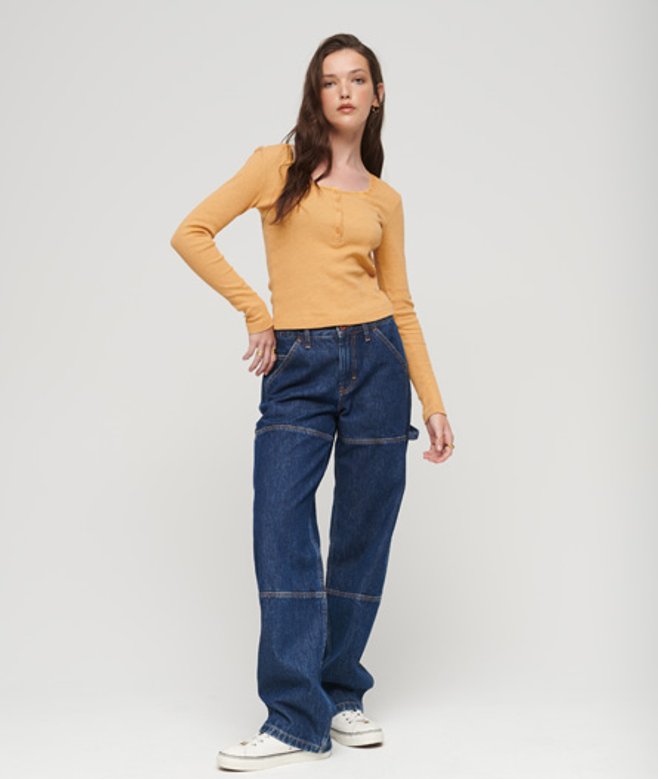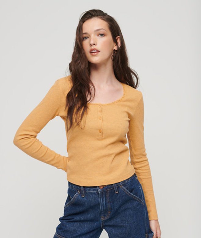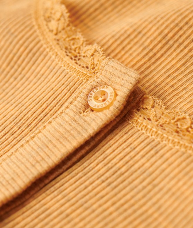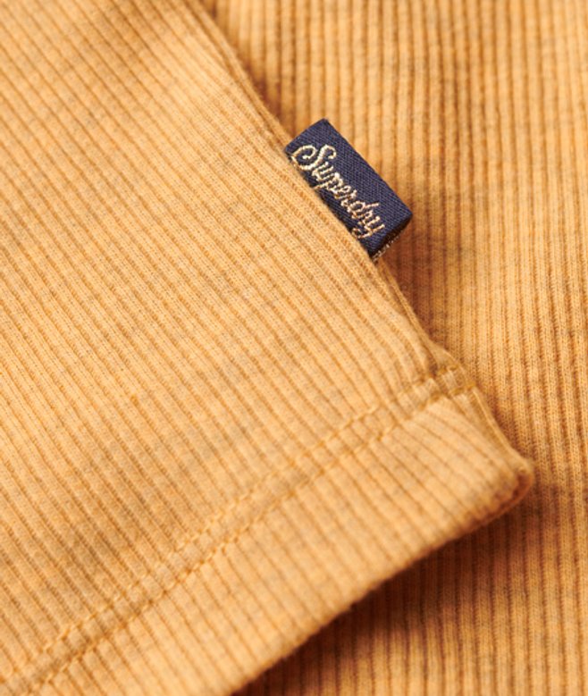 Superdry Kraagloze Geribde top met Lange Mouwen Geel