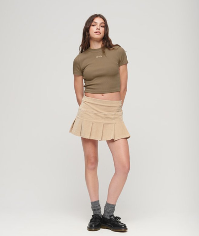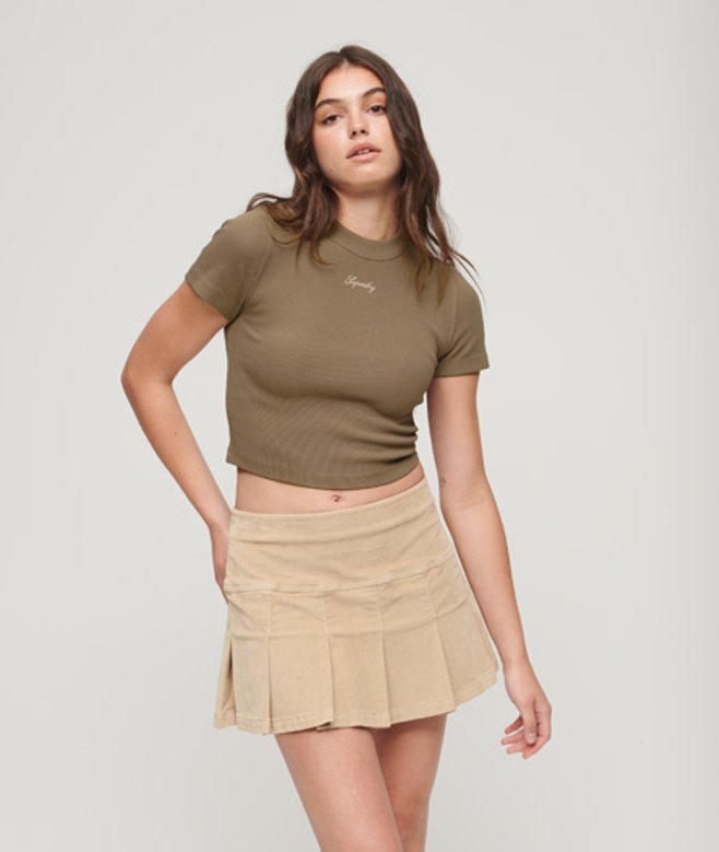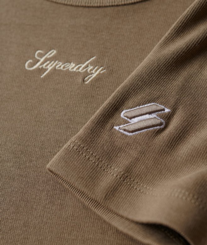 Slimfit - de nauw aansluitende pasvorm zorgt voor een getailleerd silhouet Geribde stof Ronde hals Korte mouwen Kort model Geborduurd Superdry-logo in schrijfletter Geborduurd S-logo