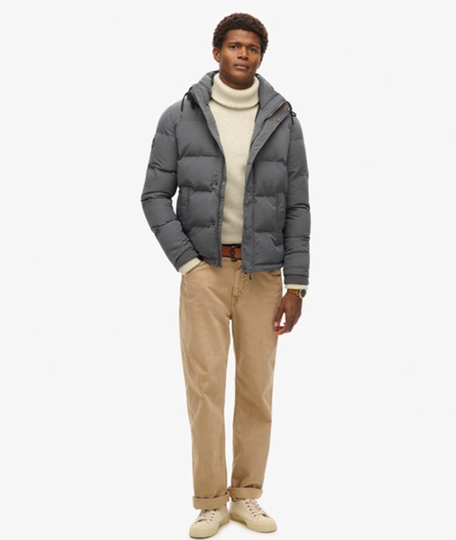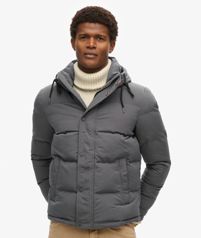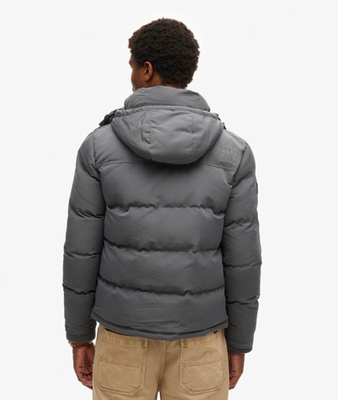 Superdry Everest Korte Puffer Jas Met Capuchon Donkergrijs