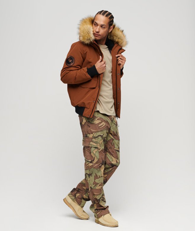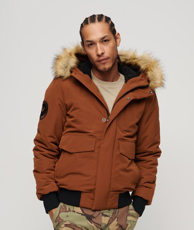 Superdry Everest Pufferbomberjack met Capuchon Bruin