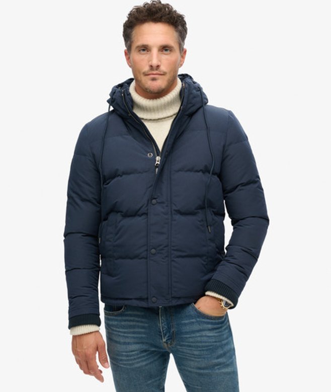 Superdry Everest Korte Puffer Jas Met Capuchon Blauw