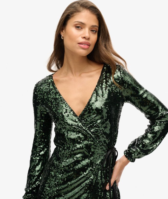 Superdry Maxi Wikkeljurk met Lovertjes Groen | ricciano NEDERLAND