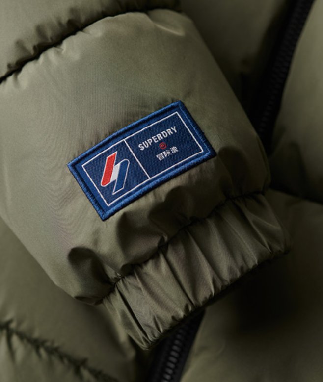 Kies je gebruikelijke maat Duurzaam waterafstotend materiaal - Deze stof is gecoat met een geavanceerde waterbestendige afwerking Capuchon met elastisch trekkoord Ritssluiting Twee zakken met rits Elastische manchetten Elastisch trekkoord in de zoom Body met fleecevoering Binnenzak van mesh Geborduurd logo Superdry-label