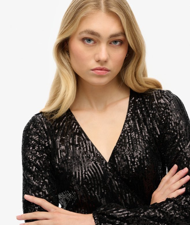 Superdry Mini-wikkeljurk met Pailletten Zwart