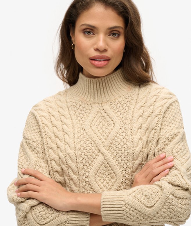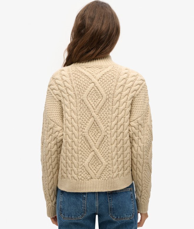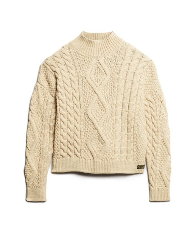 Superdry Gebreide Aran Kabeltrui met Polokraag Crème | ricciano NEDERLAND