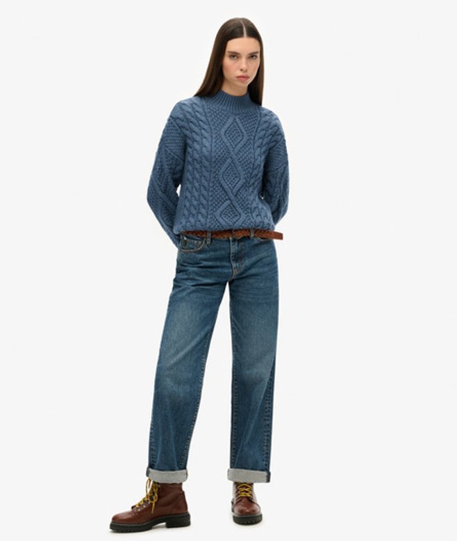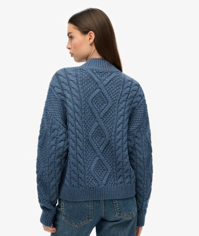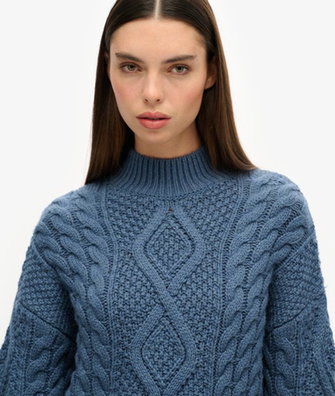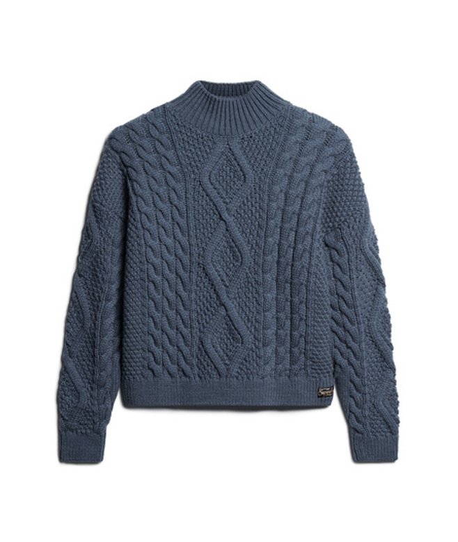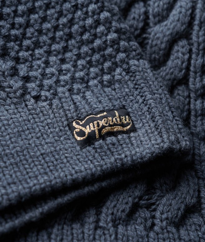 Superdry Gebreide Aran Kabeltrui met Polokraag Blauw | ricciano NEDERLAND