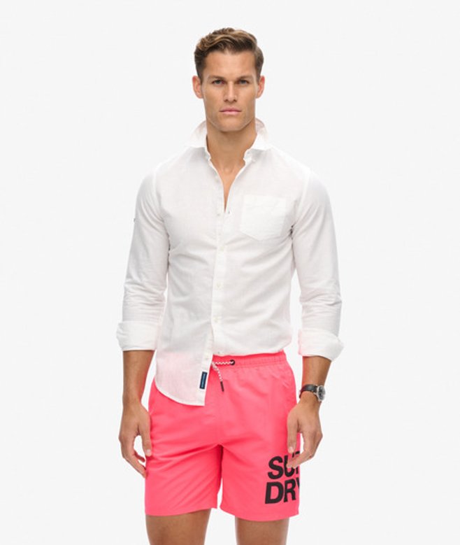 Superdry Gerecyclede Sportswear Zwemshort met Logo - 43 cm Roze