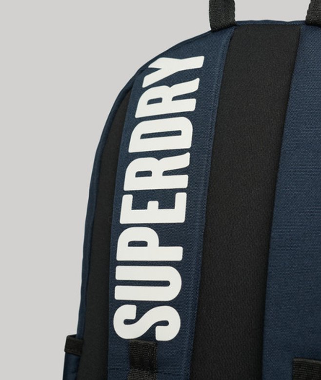Ritssluiting Voorvak met ritssluiting Twee zijzakken Handgreep Gewatteerde achterkant Tussenschot Anti-slipbodem Geborduurd Superdry-logo Superdry-logolabel H 45 cm x B 29 cm x 12,5 cm