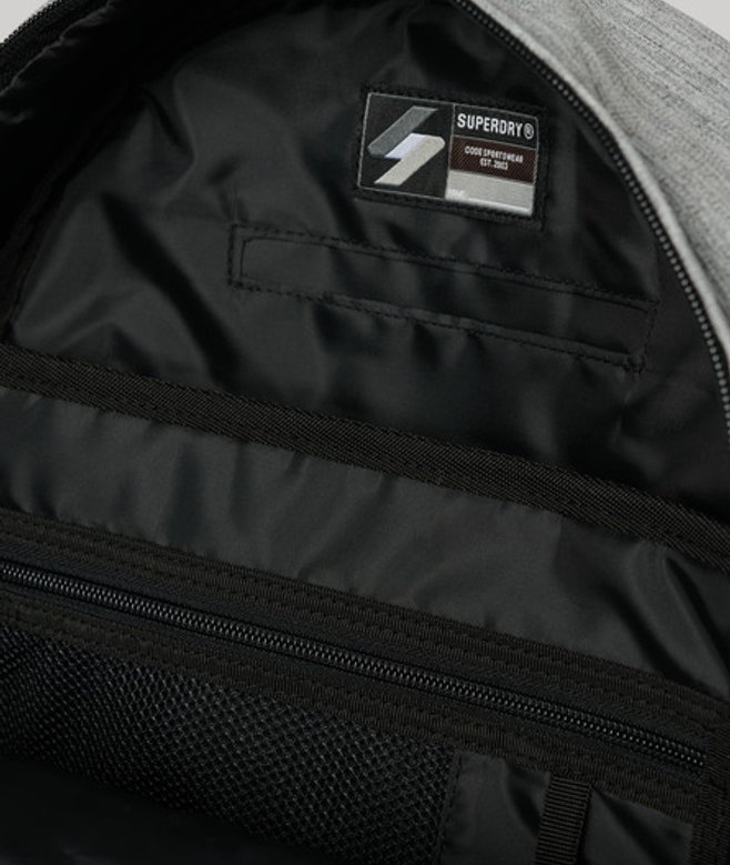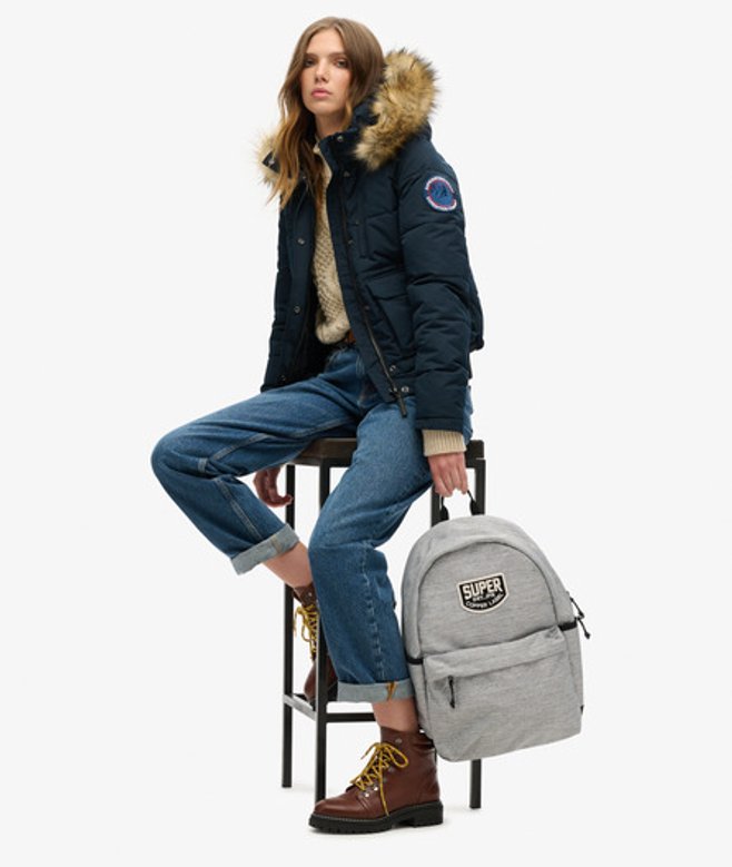 Ritssluiting Voorvak met ritssluiting Twee zijzakken Handgreep Gewatteerde achterkant Tussenschot Anti-slipbodem Geborduurd Superdry-logo Superdry-logolabel H 45 cm x B 29 cm x 12,5 cm