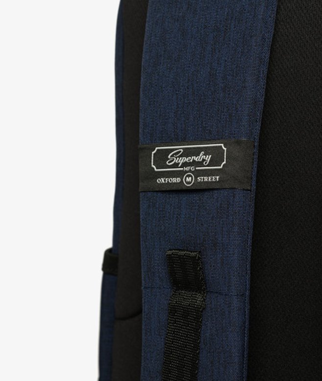 18 liter Handgreep aan de bovenkant Hoofdvak met rits Ondercompartiment met rits Twee zijvakken Gewatteerd en geventileerd achterpaneel Verstelbare schouderbanden met geventileerde vulling Interne laptophoes Binnenvak met rits Geborduurd Superdry-merklogo Superdry-logolabel op de schouderband H 45 cm x B 30,5 x D 13 cm