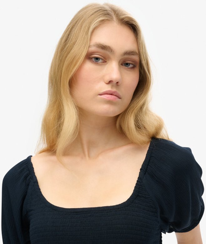 Superdry Geweven top met Smokwerk Blauw | ricciano NEDERLAND