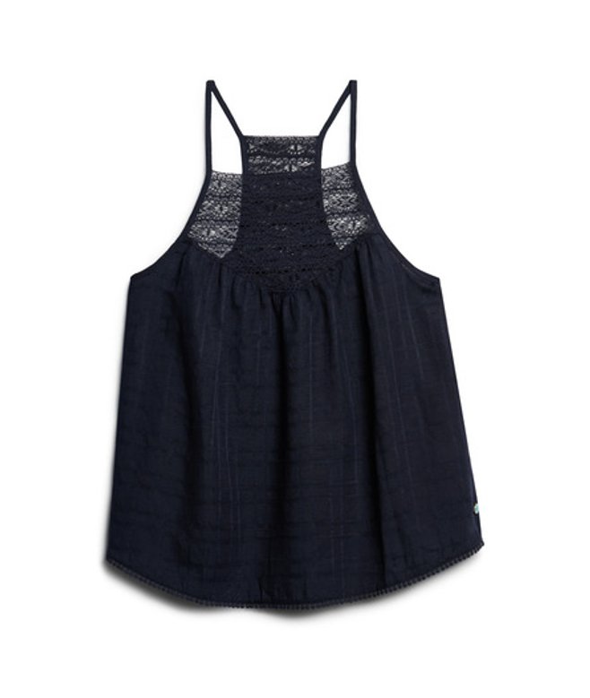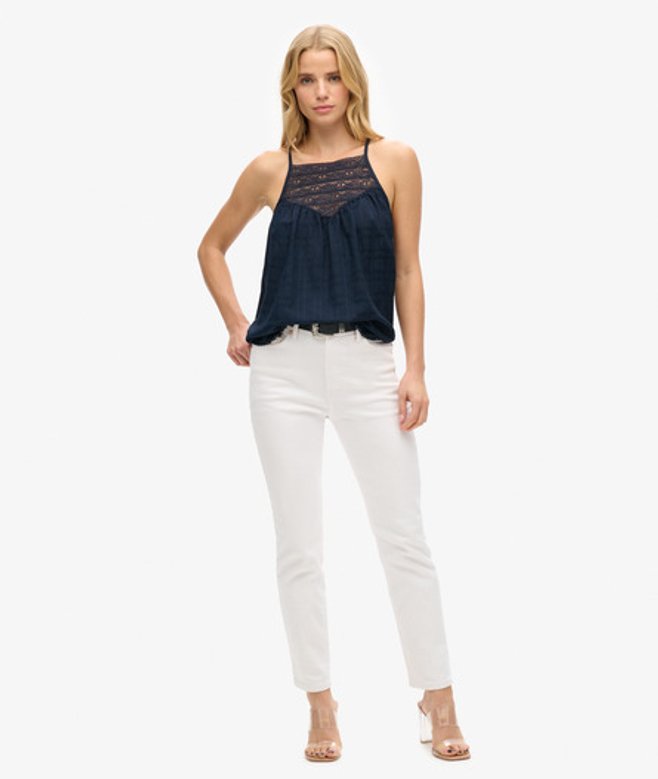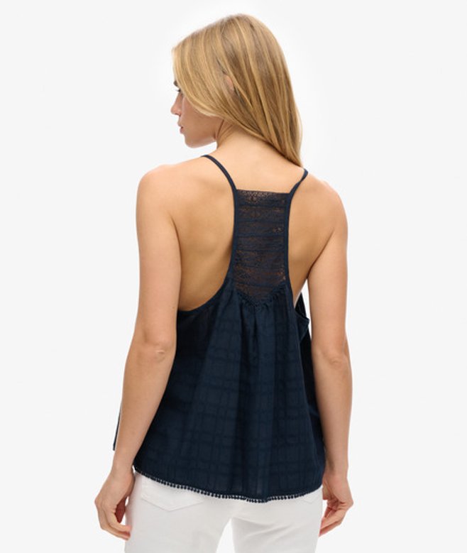 Voeg een vleugje verfijning toe aan je zomergarderobe met het cami-strandtopje met kant.