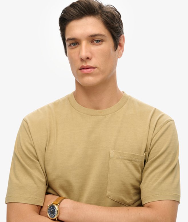 Superdry T-shirt met Borstzak en Contrasterend Stiksel Tan | ricciano NEDERLAND