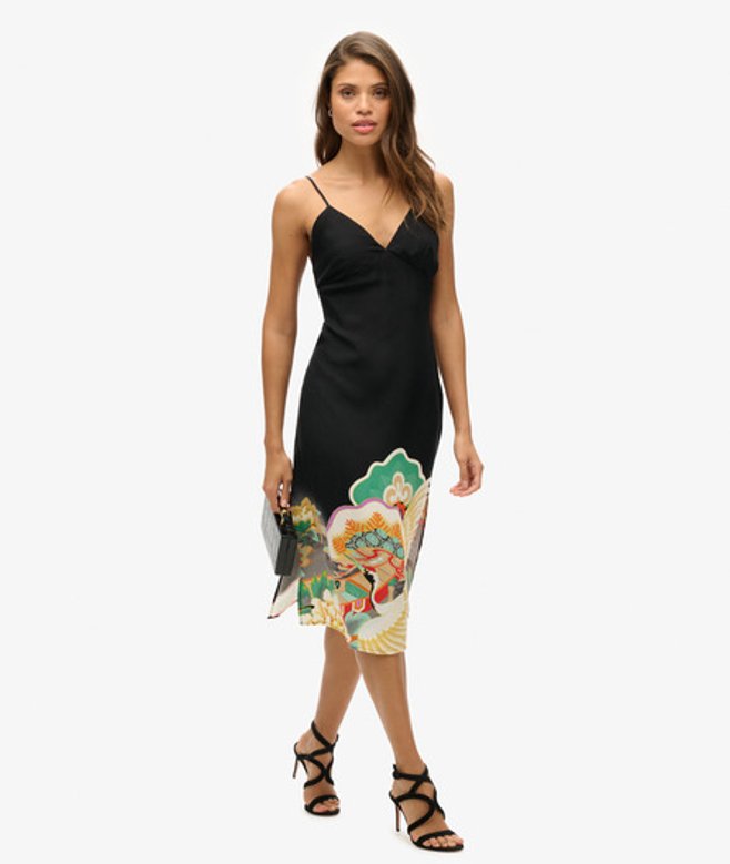 Onze halflange cami-slipjurk met print is een moeiteloze manier om een authentiek statement te maken.