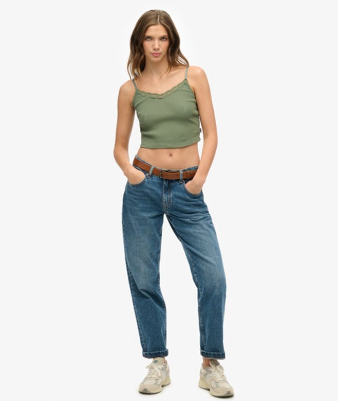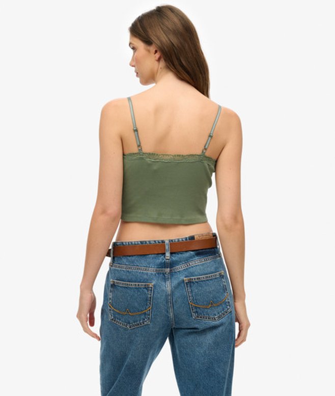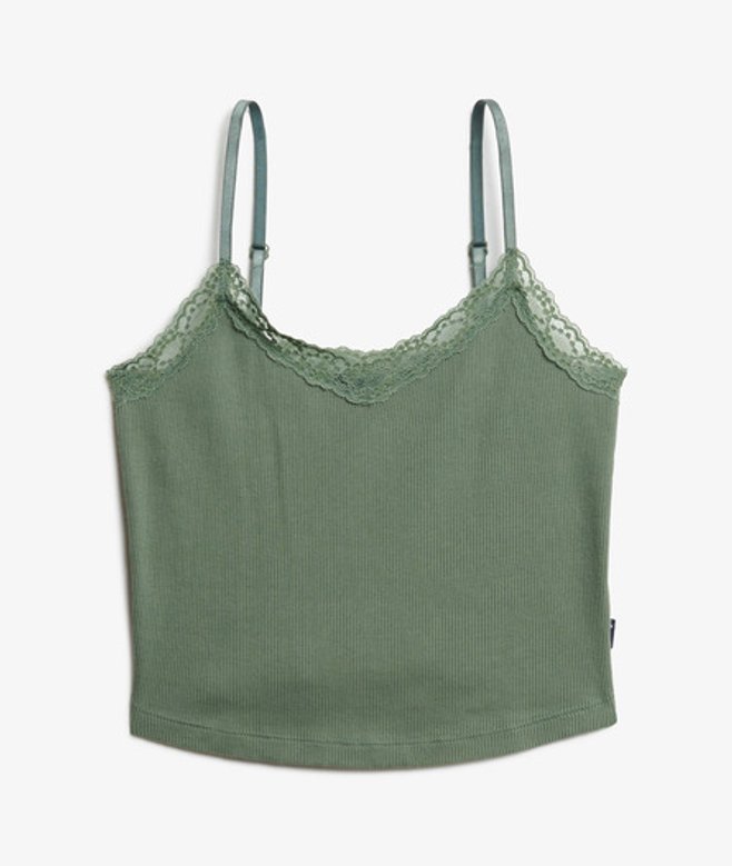 Slimfit - de nauw aansluitende pasvorm zorgt voor een getailleerd silhouet Behoort tot de Athletic Essentials-collectie Geribd materiaal Verstelbare spaghettibandjes V-hals met kanten rand Kort model Superdry-label VK 6-8, VS 2-4, EU 34-36 VK 10-12, VS 6-8, EU 38-40 VK 14-16, VS 10-12, EU 42-44