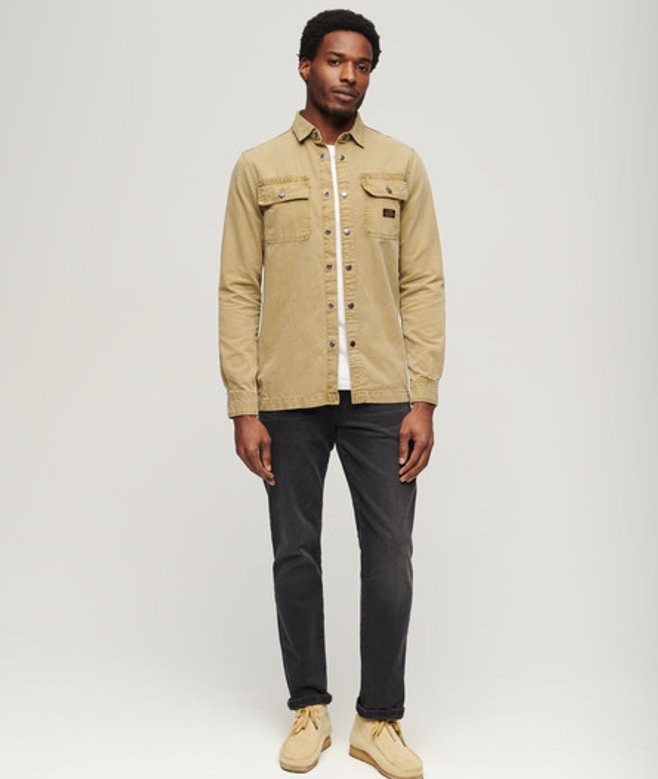 Rits- en knoopsluiting Vijf buitenzakken, waaronder een muntzakje Tailleband met riemlussen Ingenaaid Superdry-label op de achterzak Ingenaaid groot Superdry-label achterop de tailleband