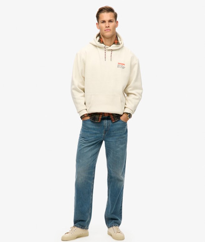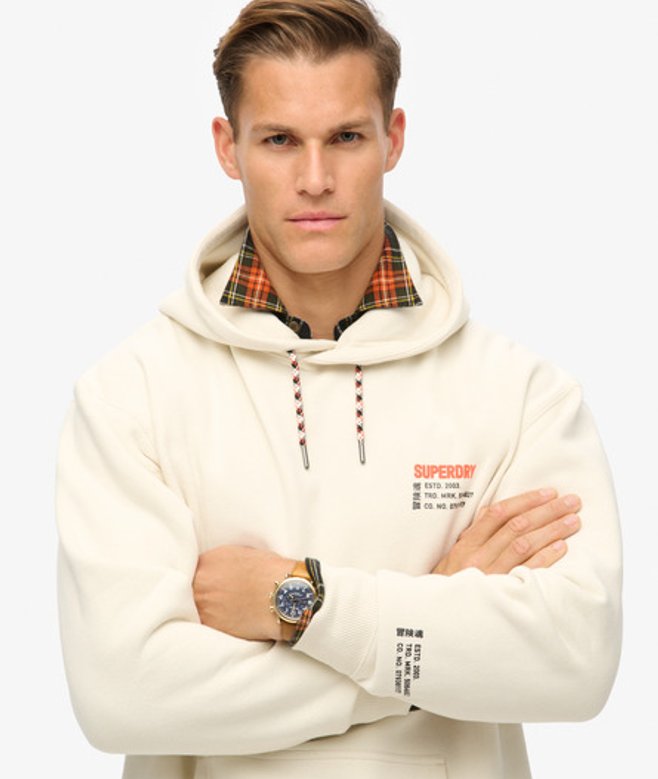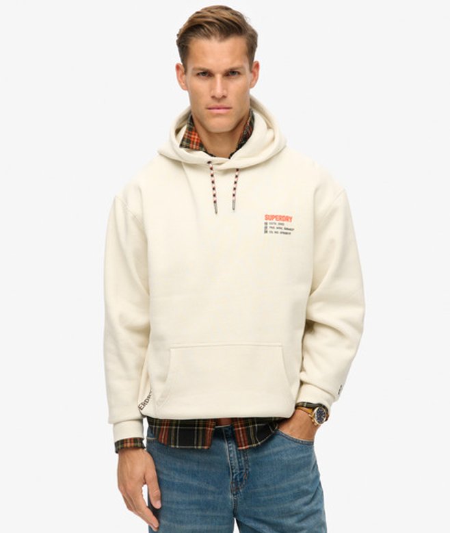 Superdry Utility Sport Hoodie met Logo en Losse Pasvorm Crème