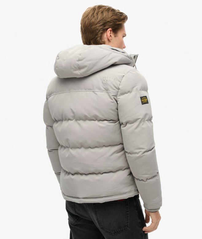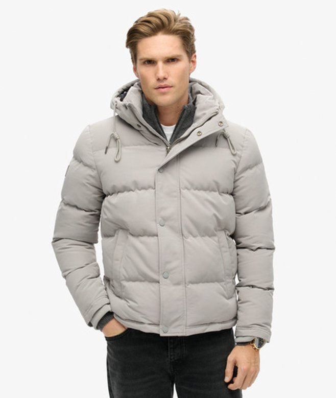Superdry Everest Korte Puffer Jas Met Capuchon Grijs