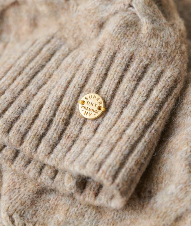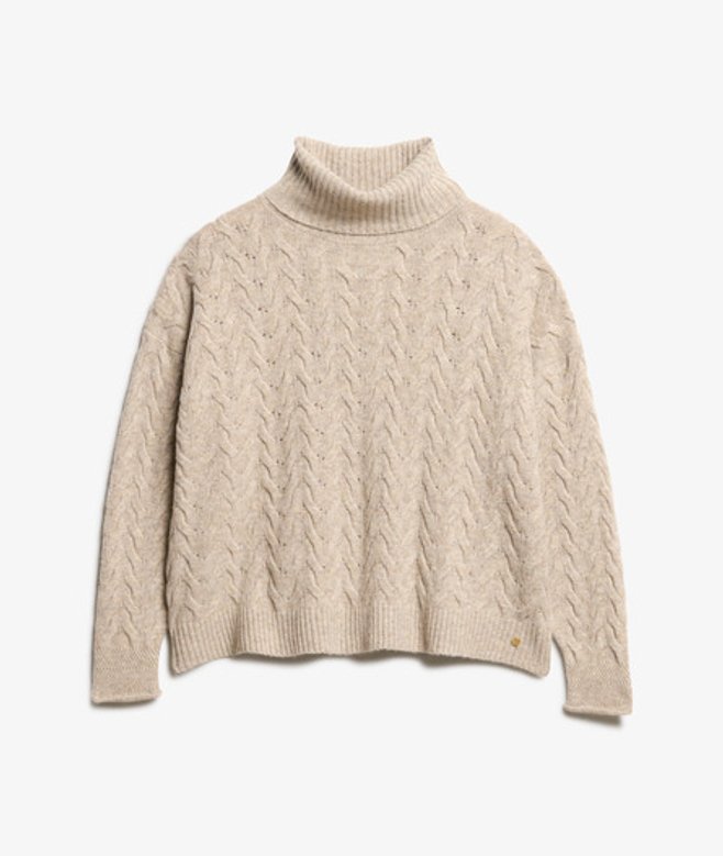 Superdry Lichtgewicht Kabeltrui met Rolkraag Beige | ricciano NEDERLAND