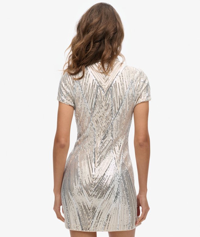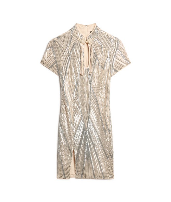 Superdry Mini-jurk met Mandarijnkraag en Pailletten Silver