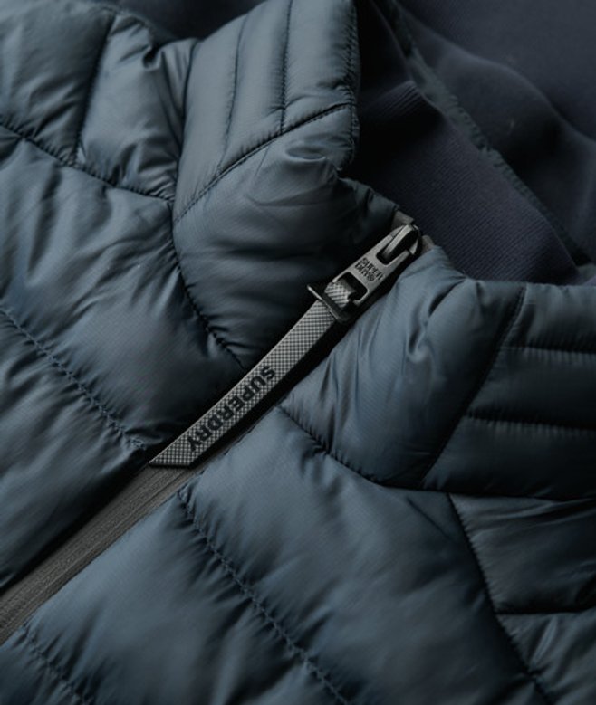 Slimfit - de nauw aansluitende pasvorm zorgt voor een getailleerd silhouet Hybride model met gewatteerde body en fleece mouwen Gewatteerde voor- en schouderpanelen Fleece mouwen en achterkant Gecoate ritssluiting Gewatteerde opstaande kraag met zachte geribde voering Twee zakken met rits Geribde mouwboorden met duimgaten Gedeeltelijk geribde zoom Binnenzak van mesh Logolabel op de mouw Geborduurd logo op de rug