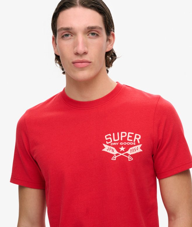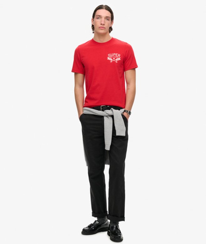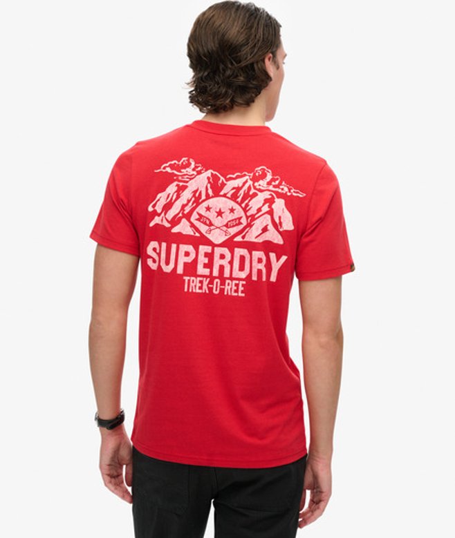 Kies je gebruikelijke maat Ronde hals Korte mouwen Geribde halslijn Grote grafische print op de achterkant Superdry-print op de borst