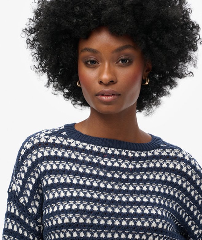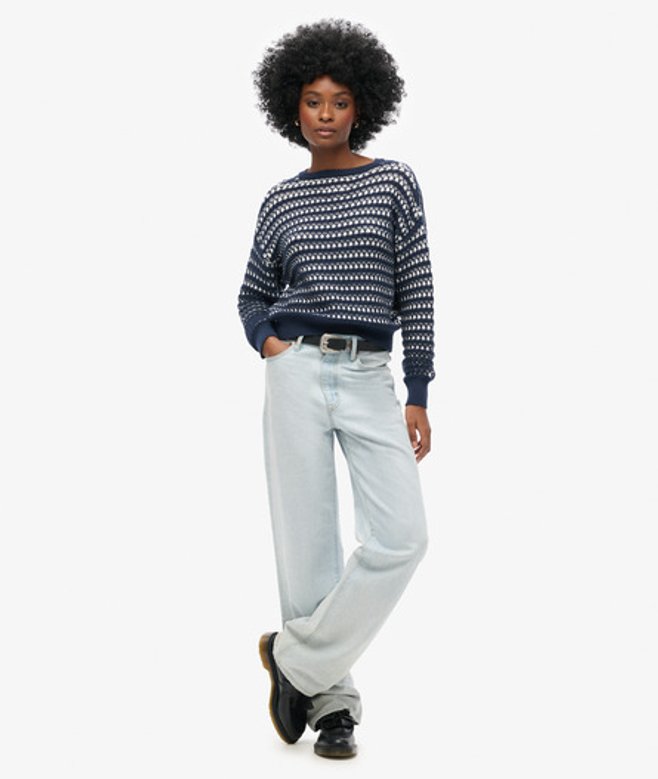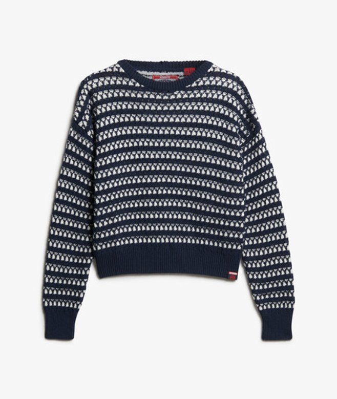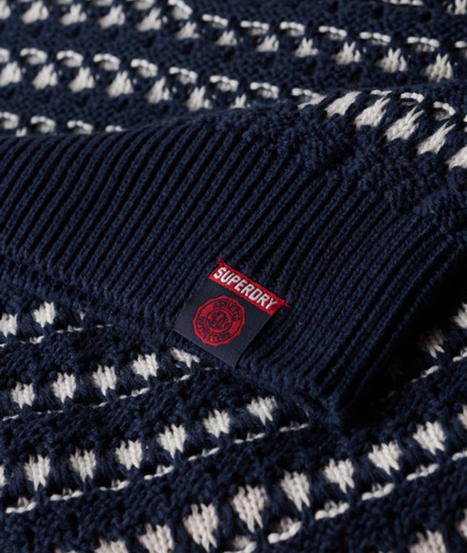 Superdry Gehaakte Korte Trui met Strepen en Ronde Hals Blauw