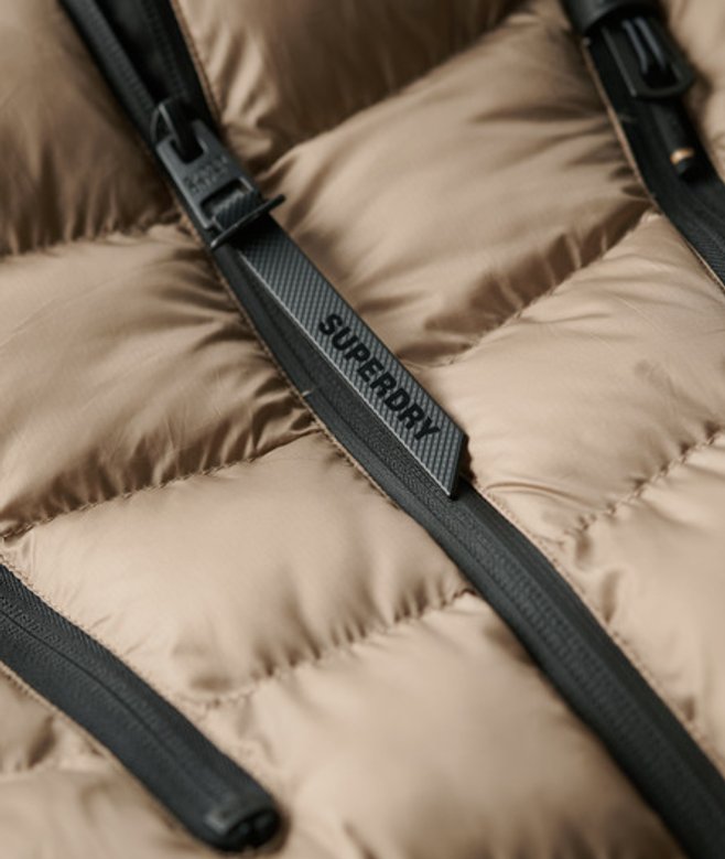 Deze jas met wattering in het hoofdgedeelte en een gladde stof op de mouwen tilt je stijl naar een hoger niveau en houdt je heerlijk warm, wat het weer ook voor je in petto heeft. Slimfit - de nauw aansluitende pasvorm zorgt voor een getailleerd silhouet Volledige rits 4 buitenzakken Eén binnenzak van mesh Licht geborstelde voering aan de binnenkant Gewatteerde body en capuchon Verstelbare capuchon met elastisch koord Elastische mouwboorden Geborduurd Superdry-stiksel Ingestikt Superdry-logo op de mouw