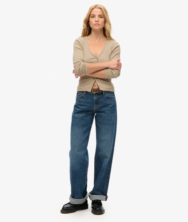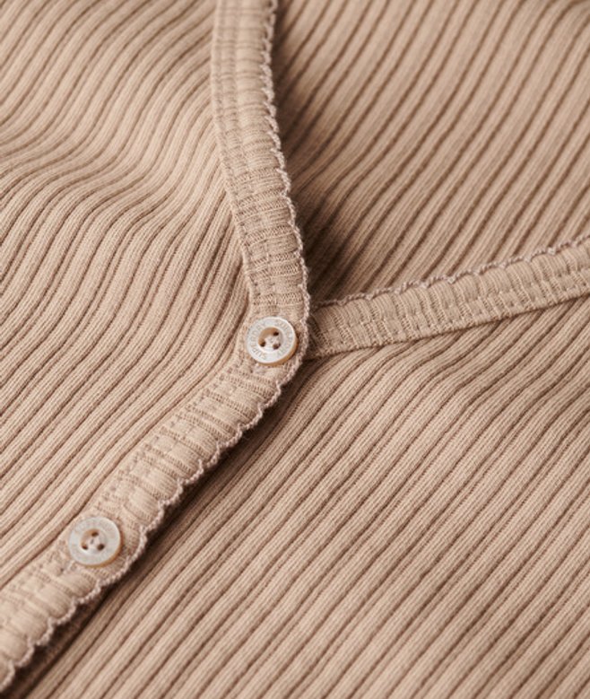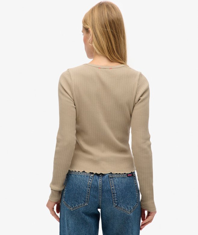 Slimfit - de nauw aansluitende pasvorm zorgt voor een getailleerd silhouet V-hals en lange mouwen Knoopsluiting over de hele lengte Geborduurd logo op de boord De Essential top met knopen en lange mouwen is eenvoudig en stijlvol, en gemaakt van een zacht, geribd materiaal voor een luxueus comfortabel gevoel.