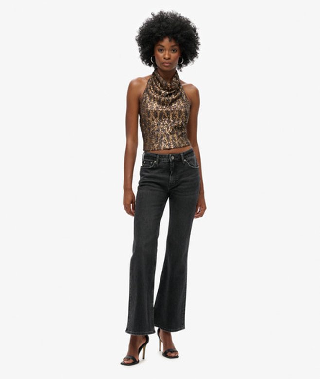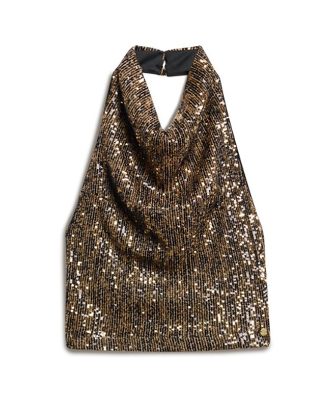 Laat je garderobe dit seizoen schitteren met onze haltertop met col en pailletten.
