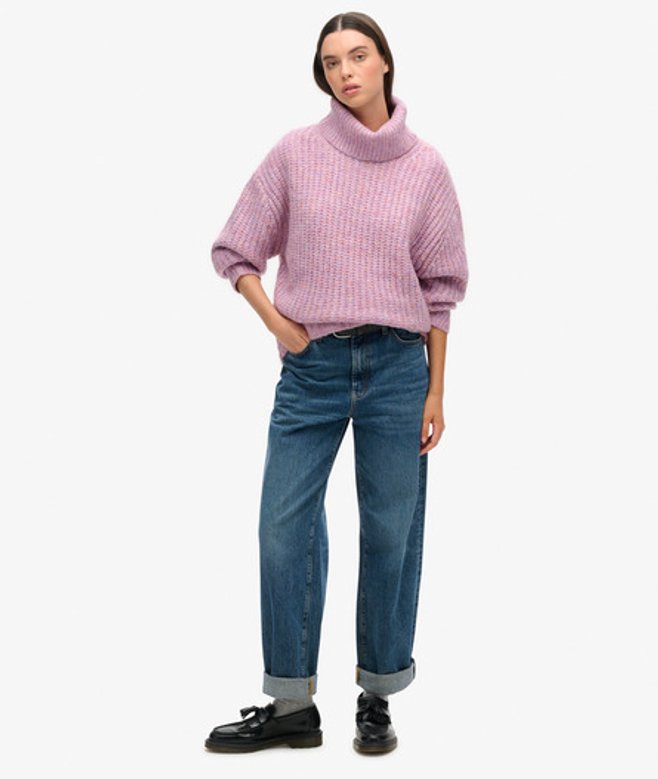 Superdry Geborstelde Trui van Ribstof met Ruimvallende Halslijn Paars