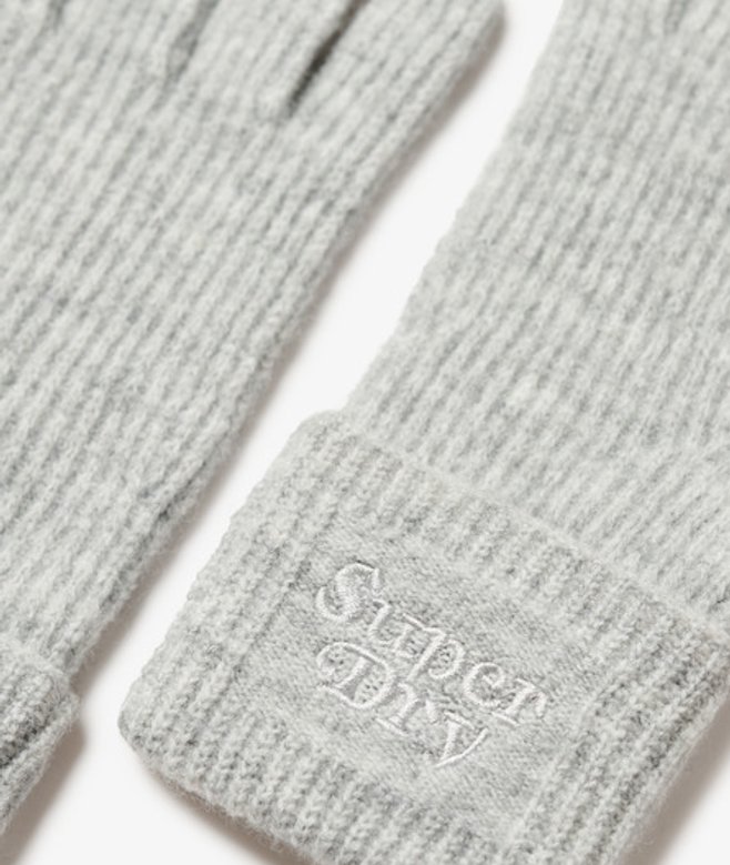 Superdry Zachte Ribgebreide Handschoenen Lichtgrijs