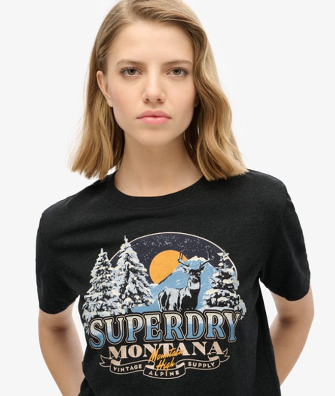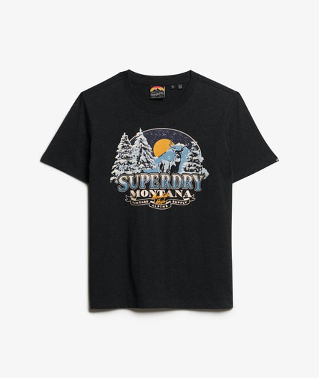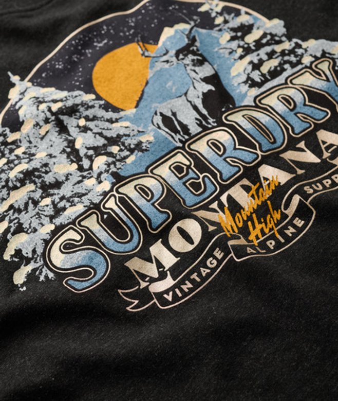 Superdry Travel Souvenir T-shirt met Relaxte Pasvorm Zwart