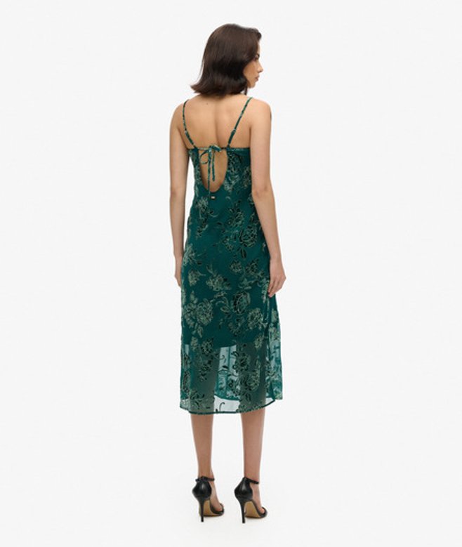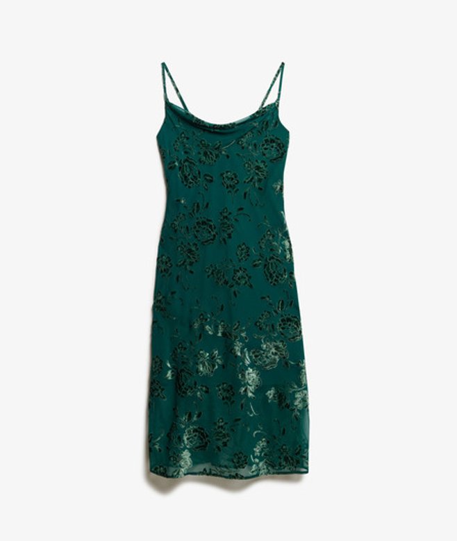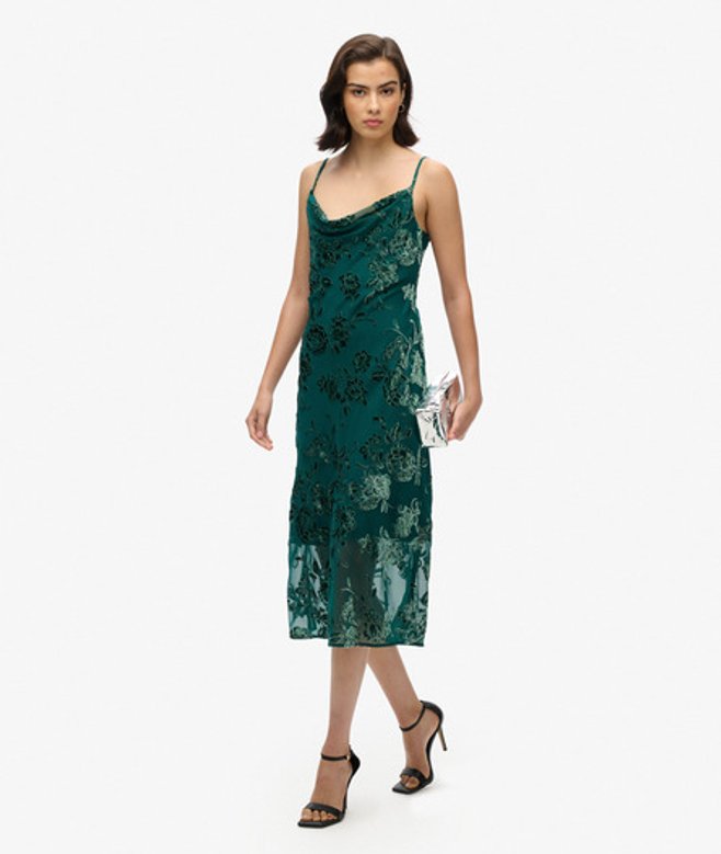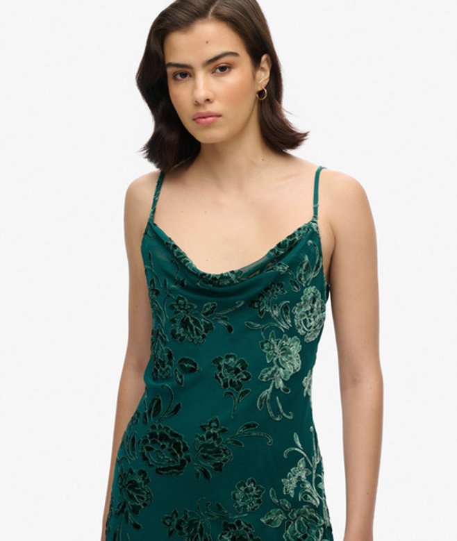 Superdry Devoré Halflange Minislipjurk met Watervalhals Groen
