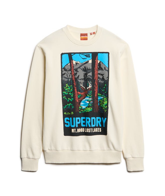 Superdry Travel Postcard Sweatshirt met Ronde Hals en Grafische Print Crème
