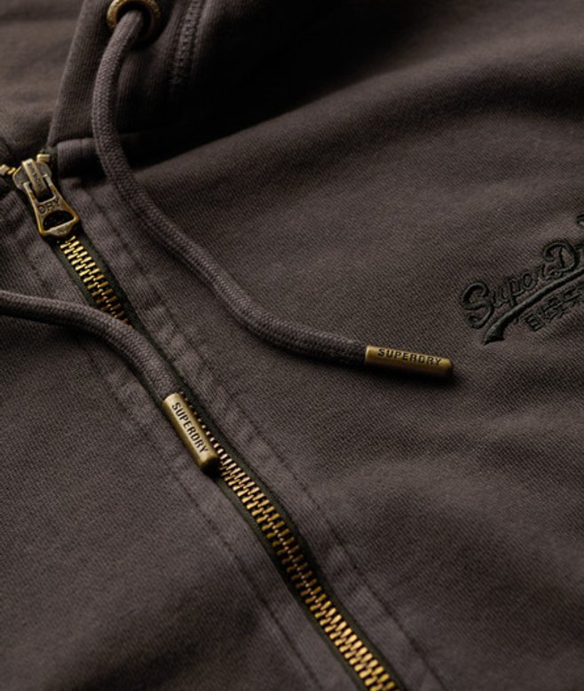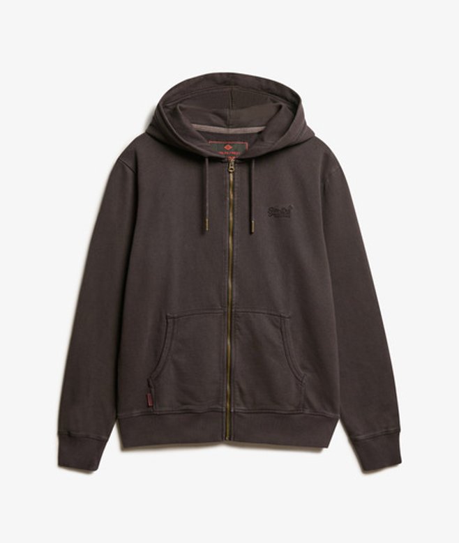 Superdry Essential Logo Washed Hoodie met Rits Bruin