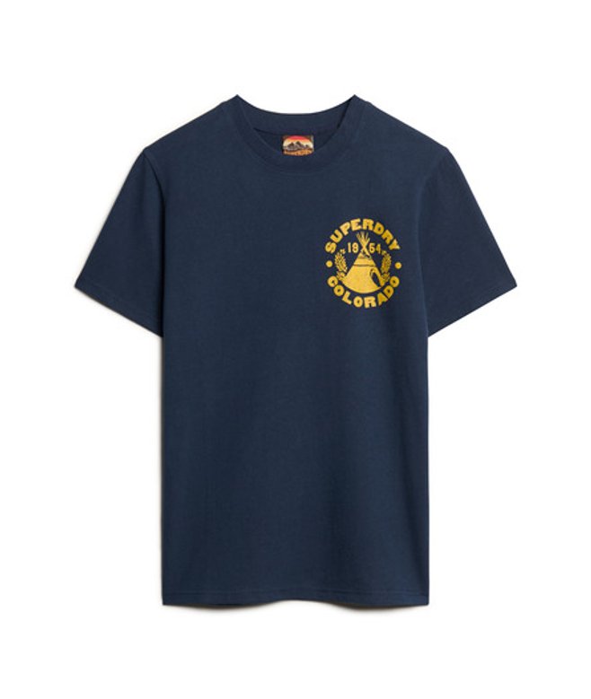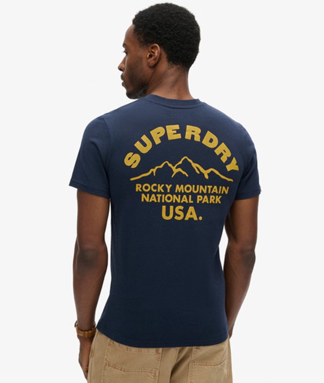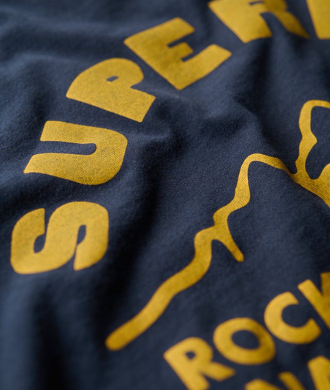 Kies je gebruikelijke maat Ronde hals Korte mouwen Geribde halslijn Grote grafische print op de achterkant Superdry-print op de borst