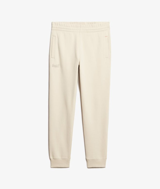 Kies je gebruikelijke maat Elastische tailleband met trekkoord aan de binnenkant Drie zakken Geribde manchetten Geborduurd Superdry-logo Kenmerkend Superdry-label op achterzak