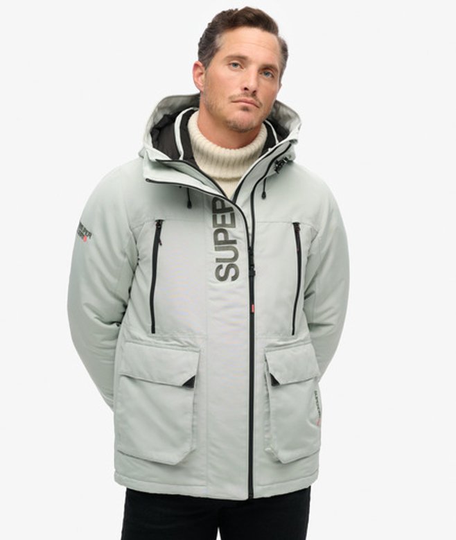 Medium schouder tot zoom: 77 cm Volledig gewatteerd ontwerp Gevoerde en gewatteerde capuchon met klep en elastisch trekkoord met stopper Meerlaagse ritssluiting met kinbeschermer aan de binnenkant en gecoate rits aan de buitenkant Twee borstzakken met gecoate ritssluitingen Twee plooizakken met drukknoopsluiting Twee zijzakken Capuchon met verstelbaar elastisch koord Verstelbare mouwboorden met klittenband Verstelbare zoom met elastisch koord Zacht gevoerde en gewatteerde binnenkraag Eén binnenzak van mesh Geborduurd logo op de buitenste knopenlijst Geborduurd logo op de mouw Opgestikt logo op de schouder