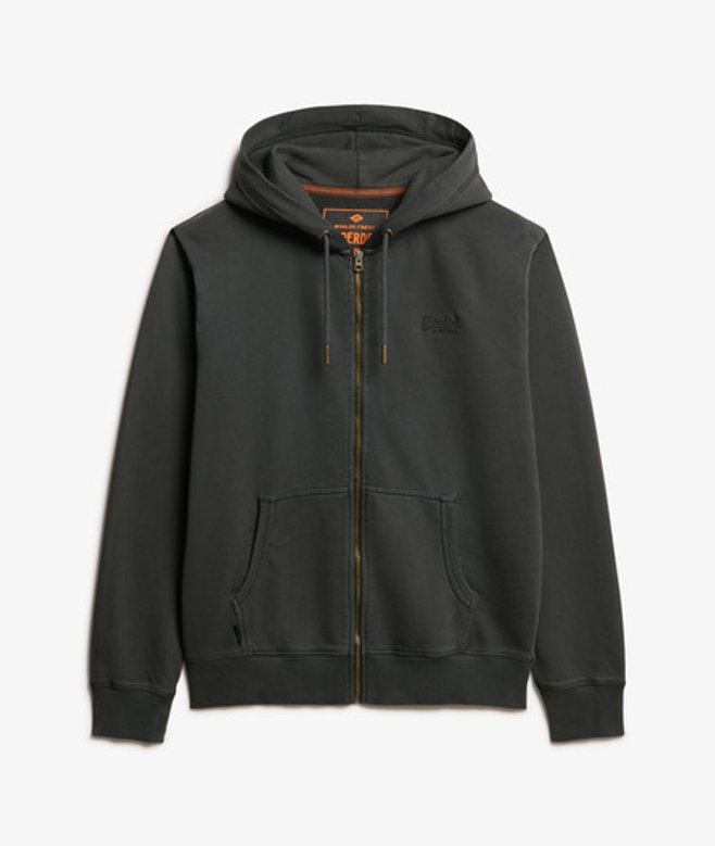 Superdry Essential Logo Washed Hoodie met Rits Zwart