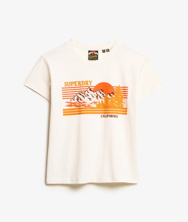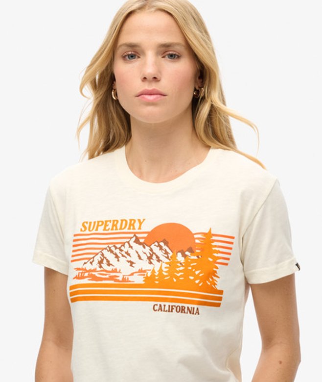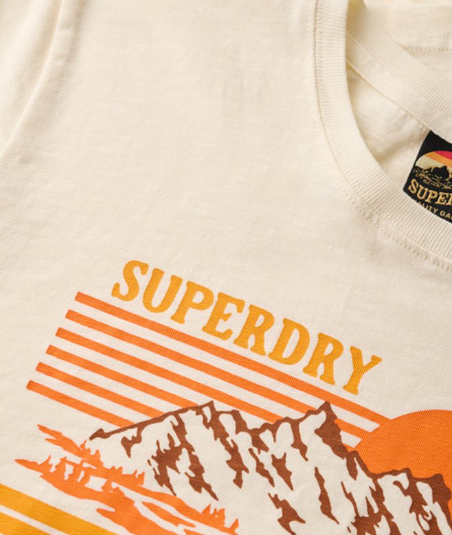 Geen inspiratie voor je outfit? Dit fraaie T-shirt wordt ongetwijfeld een van je favorieten. Slimfit - de nauw aansluitende pasvorm zorgt voor een getailleerd silhouet Geribde ronde hals Korte mouwen Biologisch katoen Superdry-outdoorsafbeelding op de voorkant